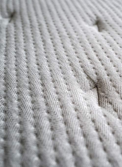 Selbst unsere Schlafsystembezüge sind auf Schlafklima und Langlebigkeit optimiert – mit drei Komponenten: einem Mischstoff aus Baumwolle, besonders atmungsaktivem Polyester zur Reduktion des „Pillings” und Elastan für eine höhere Punktelastizität; hochwertiger und flauschiger Watte zur Steigerung der Atmungsaktivität sowie Vlies mit Wabenstruktur zur Stabilisierung und Förderung der Luftzirkulation. Statt der üblichen Querversteppung nutzen wir eine vorteilhafte Jumping-Versteppung.