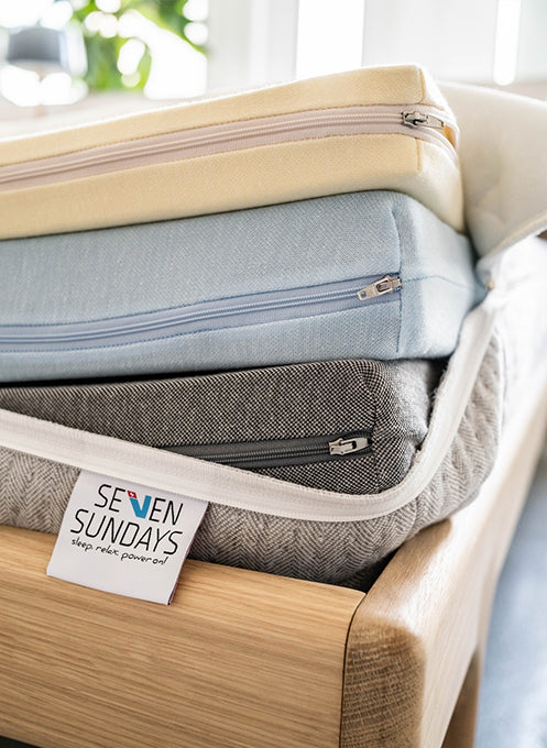 SEVEN SUNDAYS Schlafsysteme bestehen aus einem modularen 3-Schicht-System mit variablen Schichten, an dem Du Dein ganzes Leben Freude haben wirst.
