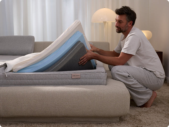 So einzigartig wie dein Körper ist, kann keine einzelne Schlafunterlage allen dienen. Personalisierte, modulare Schlafsysteme geben dir endlich die Kontrolle zurück – sie geben dir den Schlüssel zu erholsamer Ruhe, maßgeschneidert für deinen Körper. Zurück zum ursprünglichen Zweck des Schlafs: essentielle Regeneration für deine Höchstleistung.